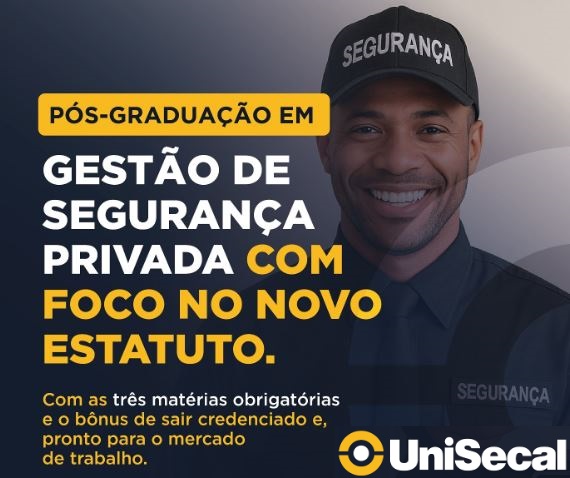 Pós-Graduação em Gestão de Segurança Privada com foco no novo estatuto — atualizada, prática e alinhada às exigências do setor.